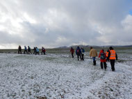 Alors que nous nous préparons à parcourir un territoire riche en sources et ruisseaux, le ciel se dégage, le soleil illumine la neige et fait briller le givre sur les arbres pour notre plus grand plaisir. Nous quittons l’Ornain, et, au lieu-dit la Sablière, nous empruntons le tracé d’une ancienne voie ferrée, passons la Source de Preuille, puis le ruisseau de Richecourt. Sans le voir, nous enjambons le ruisseau des Peux avant de rejoindre le GR 714 qui nous fait repasser au-dessus du ruisseau de Richecourt au lieu-dit les Gravottes. Chemin faisant nous dérangeons plusieurs bandes de chevreuils qui filent à travers champs à notre approche. En tout nous avons vu deux douzaines de ces animaux à l’allure si gracieuse. Nous longeons brièvement la D960. Au lieu-dit la Poirière, nous montons vers le champ d’éoliennes. Tout au long du parcours, nous profitons d’un beau paysage hivernal de bois entièrement givrés et de champs parsemés de neige. Nous nous dirigeons vers la Fontaine de Selincourt puis vers la Source de Presle avant de revenir, satisfaits et réjouis, à nos véhicules par la Sablière.