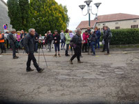 Ce lundi 6 octobre nous sommes 58 à Boucq pour un parcours de 9,2 km (11,5 km pour les 19 plus courageux). Boucq possède un château et une église imbriqués à l’origine. L’église constituait une partie de la maison forte contigüe fondée au 13ème siècle où le clocher servait de tour avancée avec un chemin de ronde entre la tour et le château. La taille des murs de l’église, la présence de meurtrières dans la tour du clocher attestent de l’usage défensif qui pouvait être fait de l’église si nécessaire. Le château de Boucq, érigé vers 1340 par Jean de Brixey en remplacement de l’ancienne forteresse du 13ème siècle, est une maison-tour au plan carré de 16 m de côté qui lui vaut le nom de « Tour Quarrée ». Elle est flanquée de deux tourelles semi-circulaires à deux angles et de bretèches à mâchicoulis aux deux autres angles. La Tour Quarrée est couverte d’une toiture à quatre pans percée de deux lucarnes et de chien-assis. Les façades sont percées de fenêtre sculptées de feuilles d’acanthe qu’il est possible de dater de la fin du XVIème siècle.